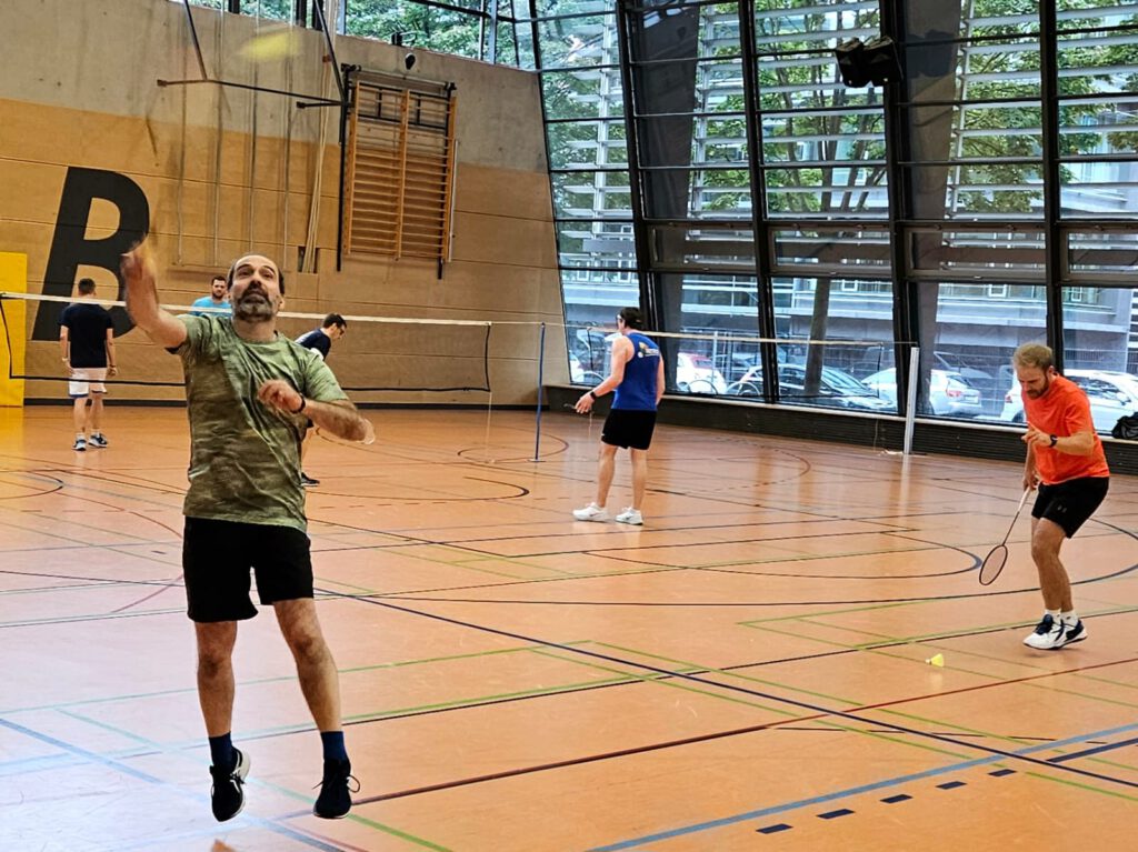 Am Mittag folgte das Schleifchenturnier mit neun Teilnehmenden. Gespielt wurde bis 21 Punkte, über zehn Runden, wobei jede*r acht Spiele absolvierte. Trotz der Erschöpfung wurde um jeden Punkt gekämpft – niemand wollte verlieren! 😄