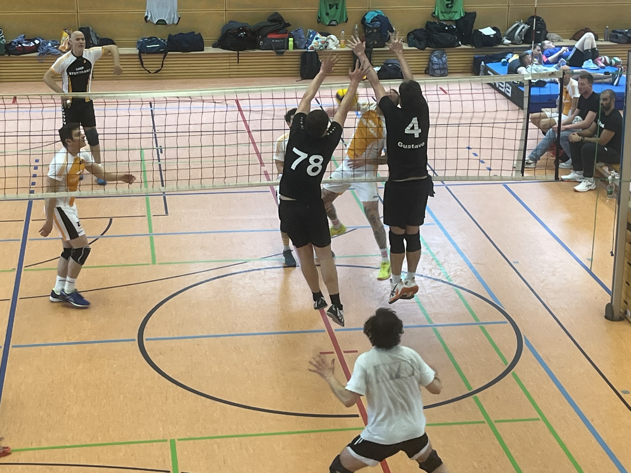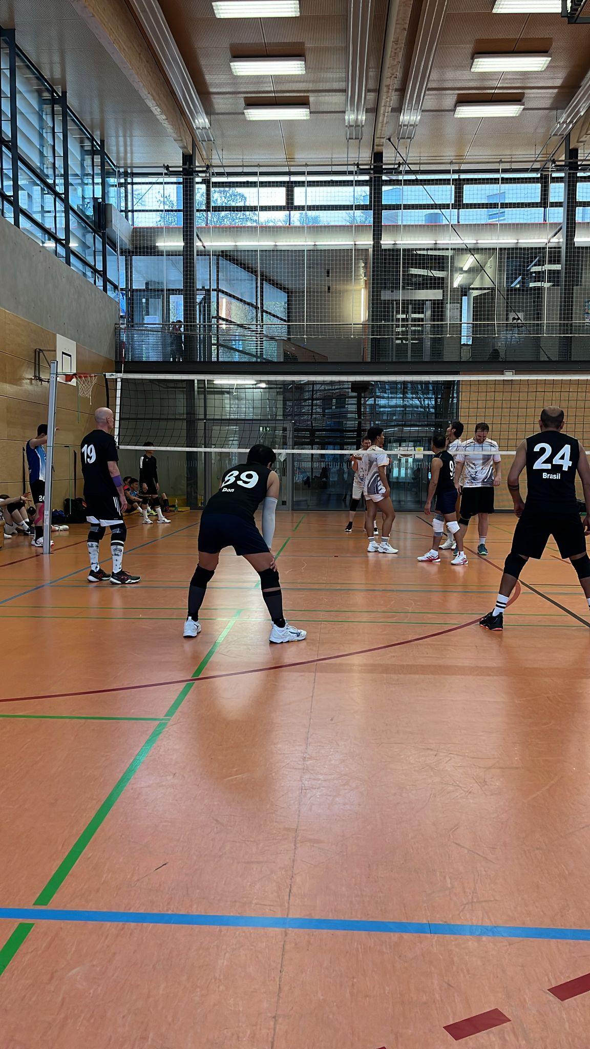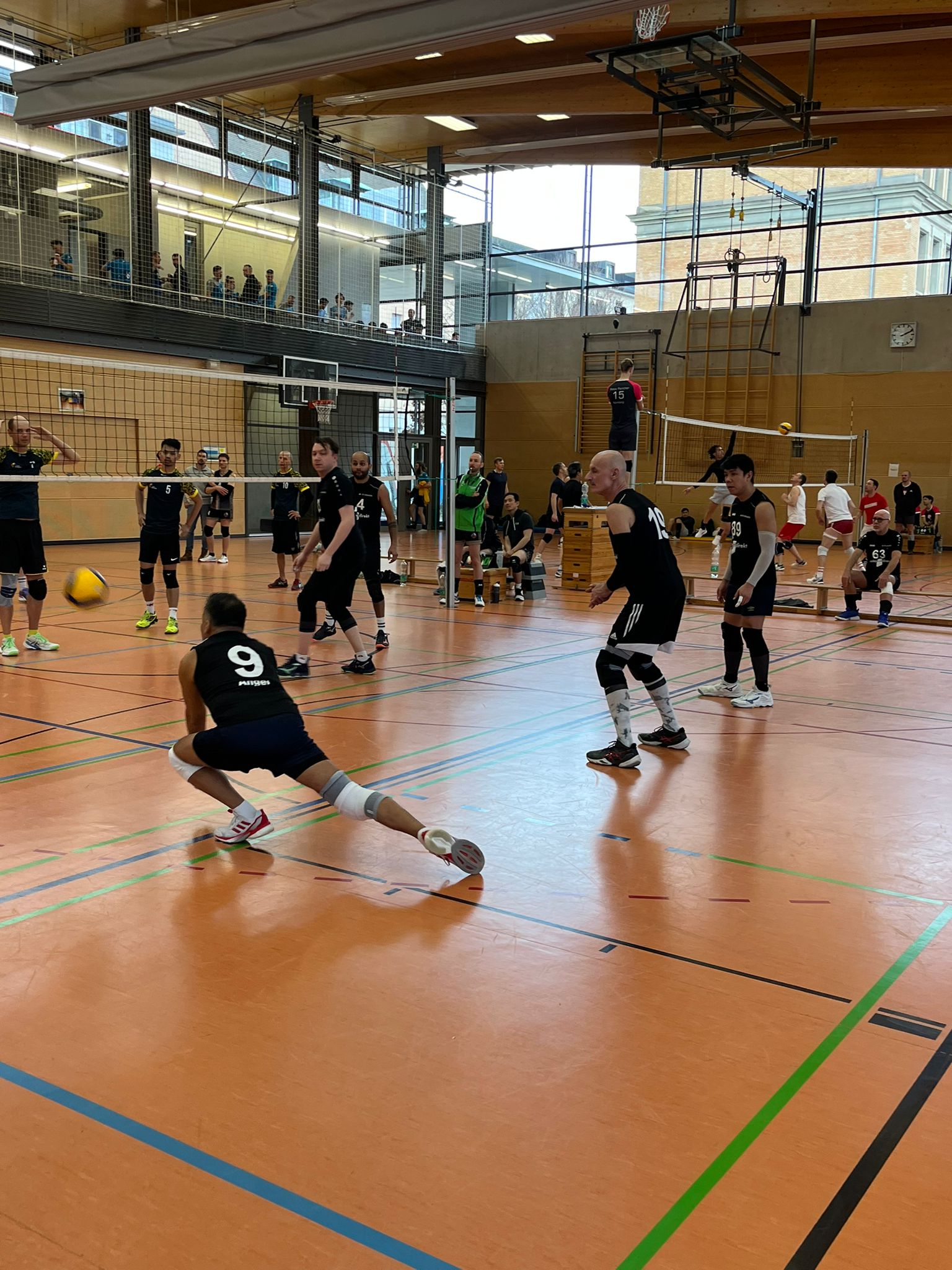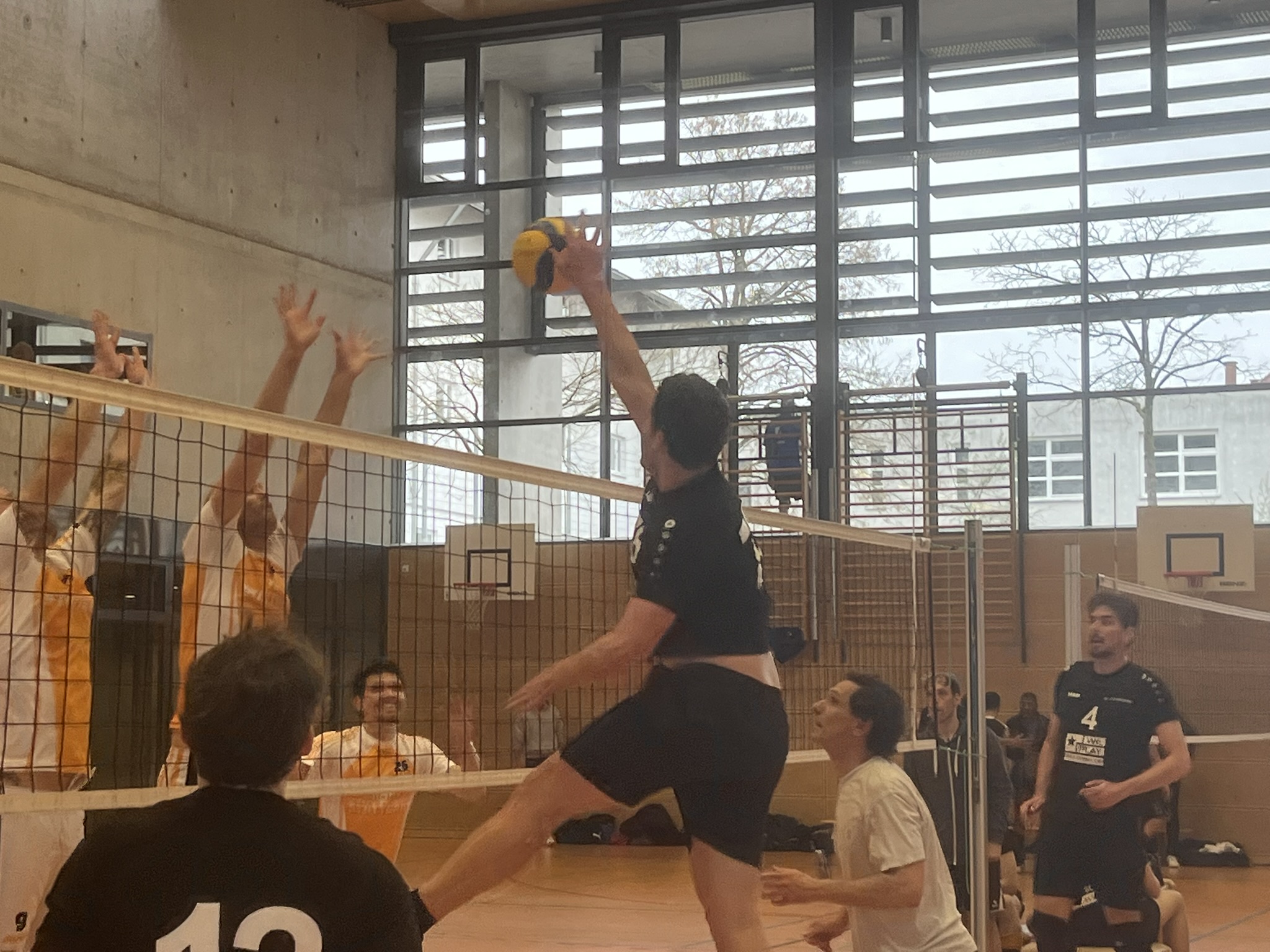 Gegen 9:30 Uhr ging’s auch schon los und das Team musste sich erstmal zurechtfinden. Unglücklicherweise ging es direkt im ersten Spiel gegen Janus, vermutlich die stärksten Gegner. Wir haben uns gut geschlagen, aber wie erwartet war vor allem der gegnerische Block eine große Herausforderung. Im Laufe des Turniers konnten wir uns aber gut einspielen, da wir morgens drei Spiele hintereinander und anschließend eine längere Mittagspause hatten. Die großzügige Verpflegung hätte uns sonst sicher auch noch schwer im Magen gelegen – insgesamt war das Turnier wirklich super organisiert.