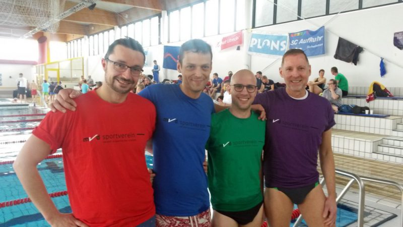 Eine Staffel wurde auch geschwommen. Da allerdings nur drei mvd-ler am Start waren und die vierte Position in der Staffel mit einem Freund vom Stuttgarter Abseitz besetzt wurde, lief die Staffel außerhalb der Wertung. Trotzdem hat sie Spaß gemacht und war für die Teilnehmer ein kleiner Erfolg.