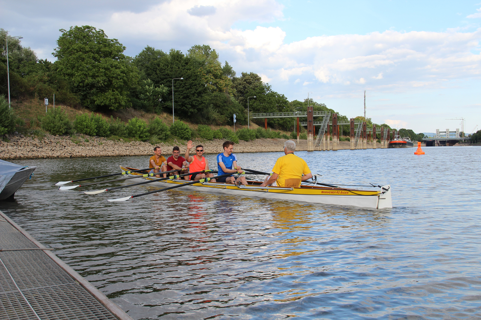 Der Empfang durch die MRG Baden war sehr herzlich. Der Verein stellte sogar zwei langjährige Ruder*innen zur Verfügung, die den mvdlern*innen die benötigten Grundkenntnisse vermitteln. Rudern ist eine von wenigen Kraftausdauer-Sportarten, die sich auf alle Hauptmuskelgruppen positiv auswirkt, kreislauffördernd ist und bis ins hohe Alter betrieben werden kann. Zudem ist es ein tolles Gemeinschaftserlebnis neckaraufwärts zu rudern und die Stadt aus dieser Perspektive zu sehen. Trainiert wird in Zweier-, Dreier- oder Vierer-Booten, wobei für die Besetzung Anfänger*innen mit erfahrenen Ruder*innen gemischt werden. Ziel ist es, möglichst bald auf eigenen „Ruderfüßen“ stehen zu können.