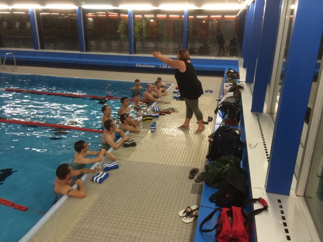 Bei der ersten Trainingsstunde waren die Reaktionen noch verhalten und die meisten Schwimmer blieben in den Bahnen für das freie Schwimmen. Auch Wibke musste erstmal die Trainingswilligen nach Leistung einsortieren und den Trainingsplan anpassen. In der folgenden Woche nahmen aber bereits alle in der Halle am Training teil und die restlichen Bahnen zum freien Schwimmen wurden dem Training zugeschlagen.